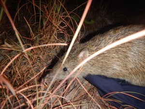 During our night-time spotlighting we only managed to see a northern brown bandicoot, but we also came across a giant white-tailed rat.
